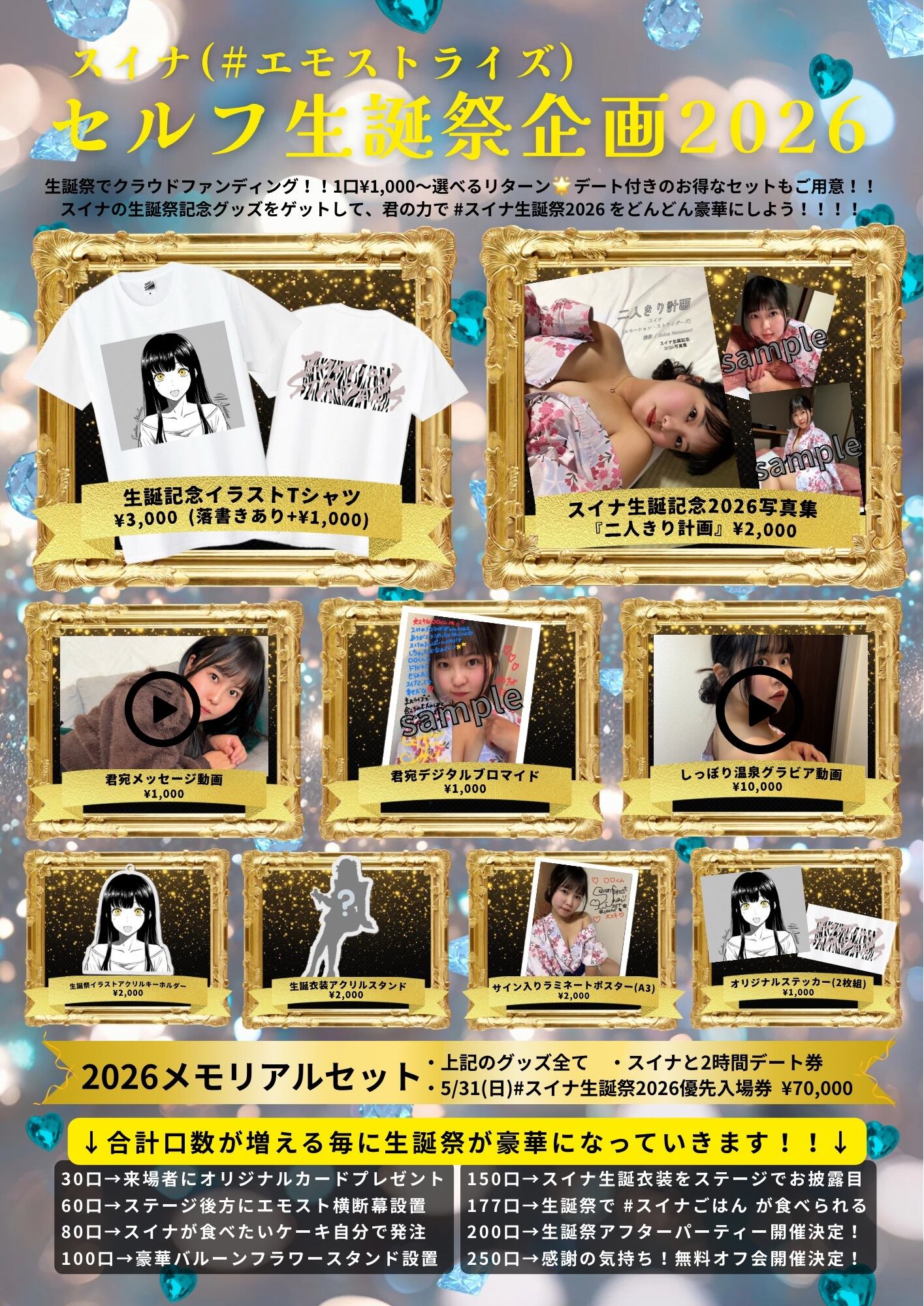 →5.31(日)#スイナ生誕祭2026イベントでクラウドファンディング!!1口¥1,000〜リターンが選べます。合計口数が増える毎にイベントが豪華になっていきます。